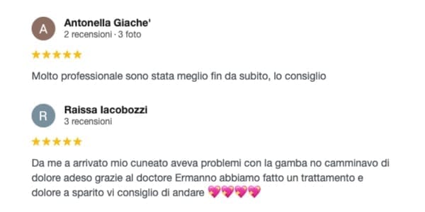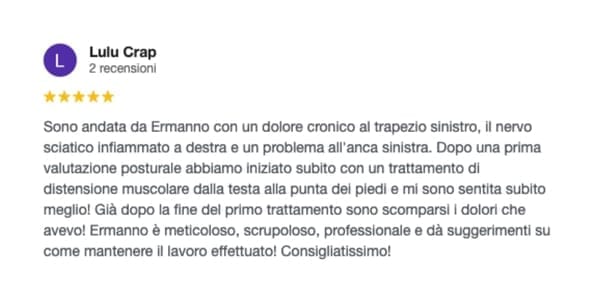 Ero completamente bloccato dal collo in giù, dopo appena due sedute ho ricominciato ad assaporare una vita senza dolori. Ho molto da lavorare ma la strada mostrata dal Dott. Ermanno è quella giusta.